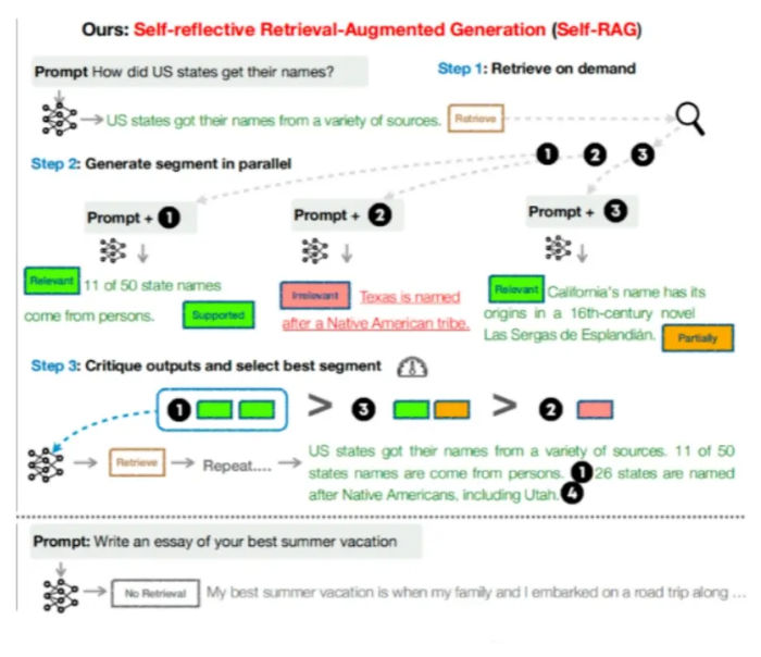 One of the most important RAG insights is that not every question needs retrieval. Self-RAG introduces a mechanism for the model to decide whether external knowledge is required before answering.